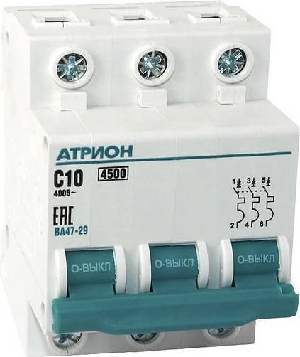 10 А, 3P, кривая тока: C, ном. отключающая способность 4.5 кА
