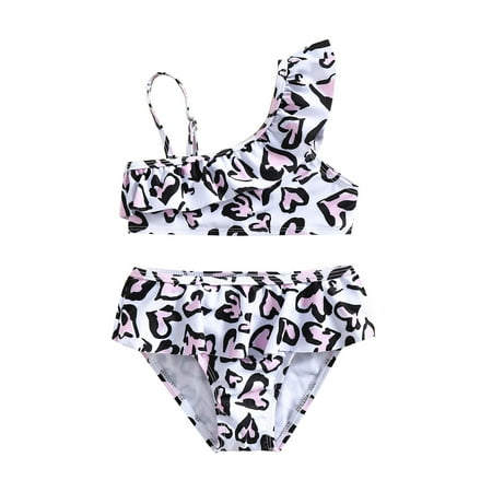 Summer Toddler Girls Leopard Printed Ruffles Two Piece Swimwear Swimsuit Bikini