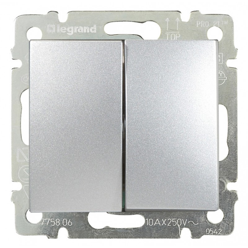 Выключатель Legrand Valena, 2кл., скрытый монтаж, механизм с накладкой без рамки, алюминий (770105)