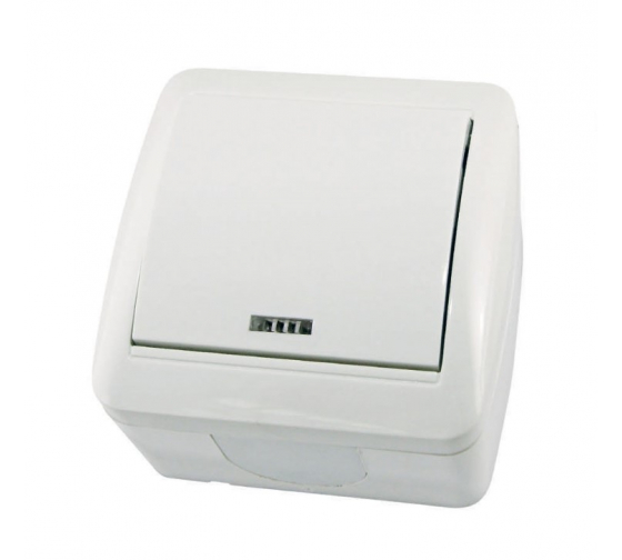 Выключатель TDM Селигер, 1кл., индикатор/подсветка, открытый монтаж, в сборе, белый (SQ1818-0003)