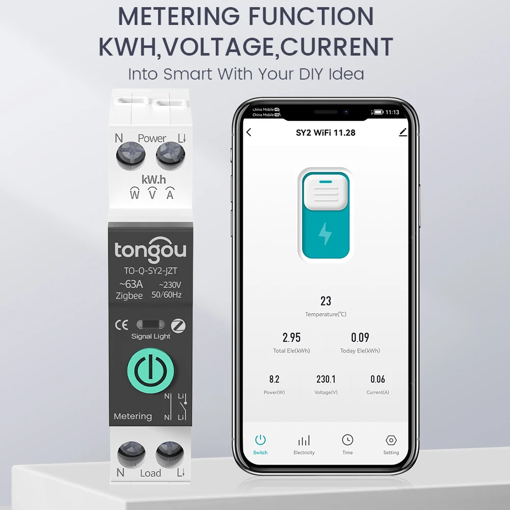 Выключатель Tuya Zigbee универсальный, умный выключатель с монитором потребления энергии, с дистанционным управлением, 1 шт.