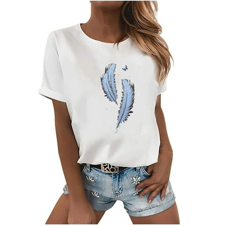 Women s Fashion Casual Printing O Neck Loose Short Sleeve T shirt Pullover Tops Ladies Boho T-shirts Y2k Trendy Tees Loose Sweatshirts Graphic Tshirts plus size tops swim tops corset tops