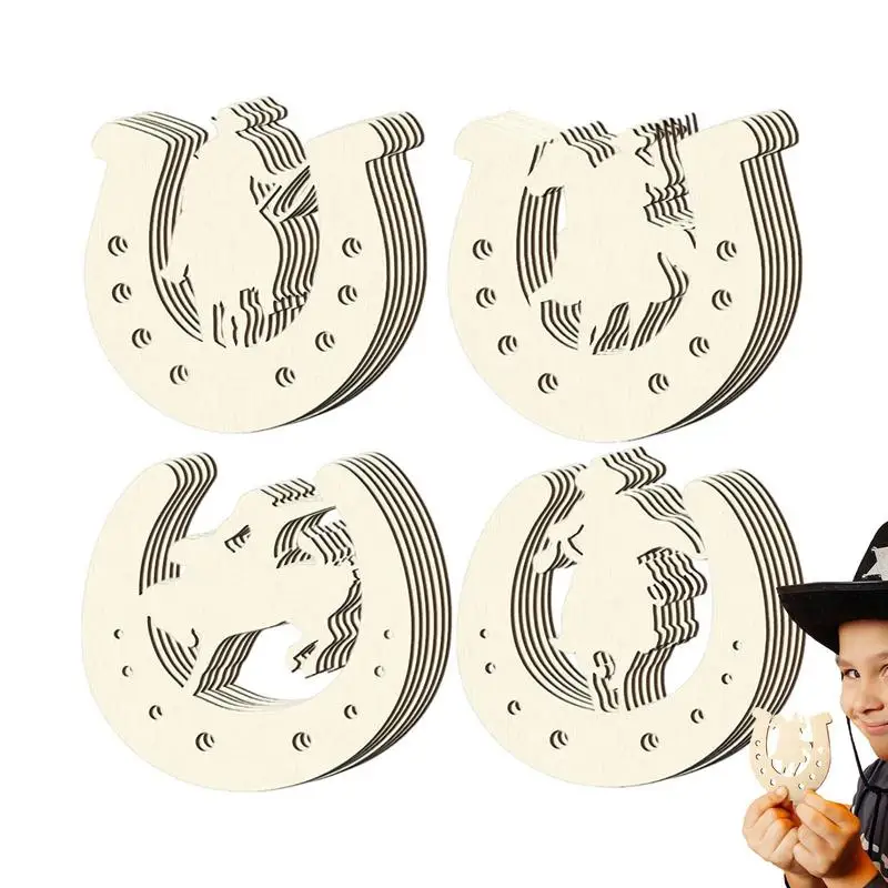 Вырезы в форме подковы, резные необработанные деревянные подковы для домашнего декора, 24 шт./48 шт., деревянные вырезы в форме подковы, деревянные диски «сделай сам»