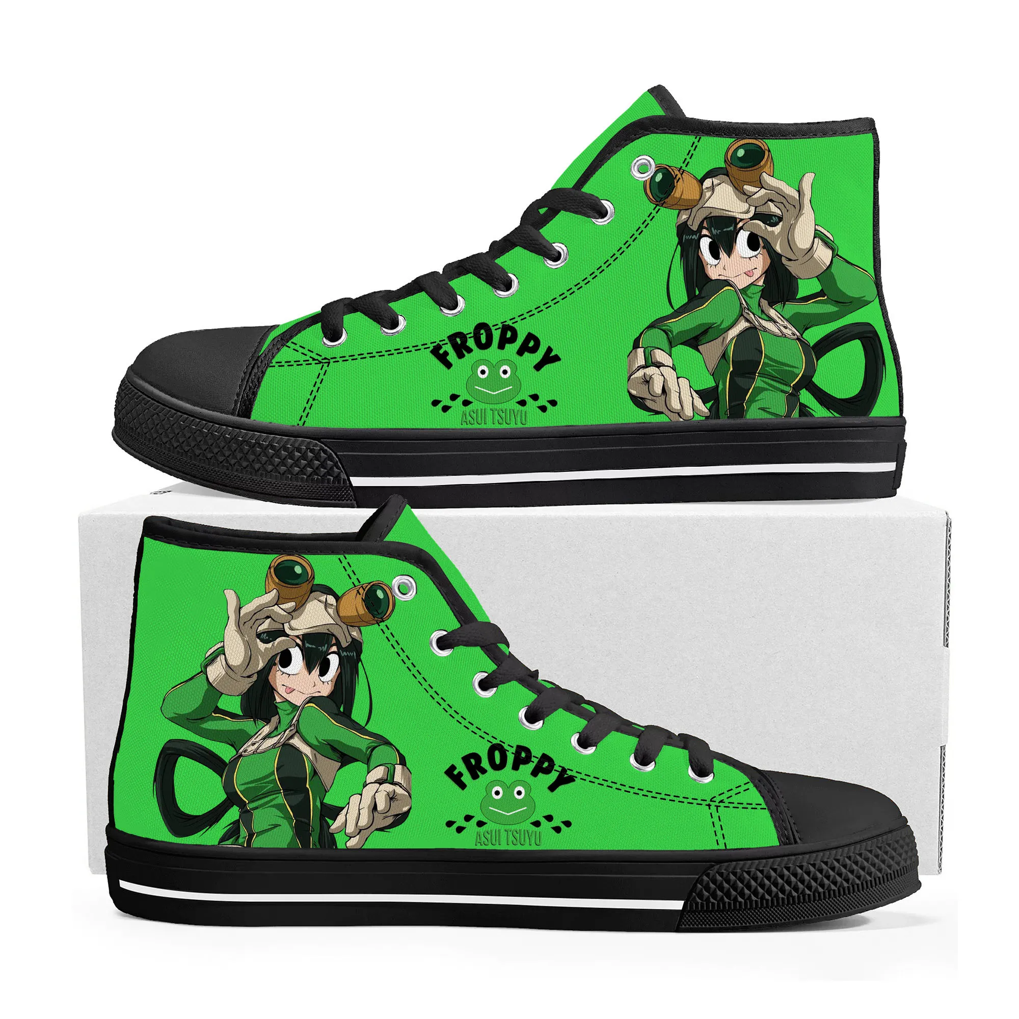 Высокие кроссовки аниме Asui Tsuyu My Hero академия, мужские и женские подростковые высококачественные холщовые кроссовки, обувь для пар, обувь на заказ