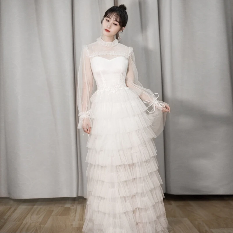 Высокое качество, Белое Бальное Платье вечерние прозрачные трусики, несмотря на то, что с длинным рукавом длиной до пола нарядное кружевное ...