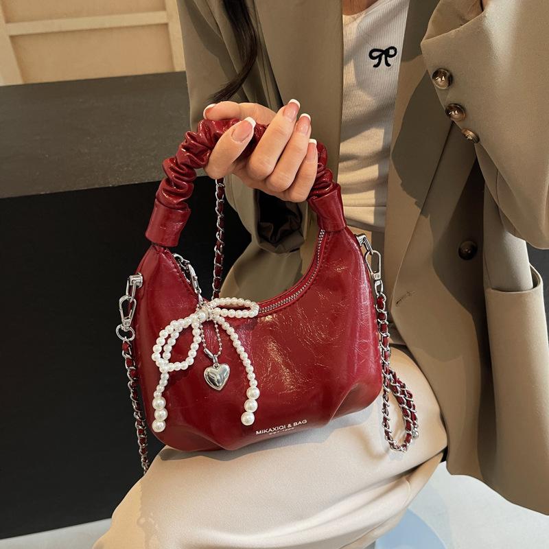 Высококачественная иностранная газовая складчатая портативная сумка Cloud Bag на цепочке, модная сумка через подмышку бордовый