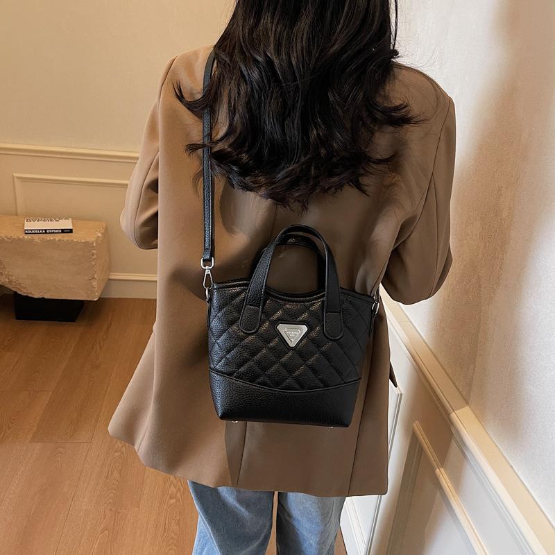 Высококачественная контрастная цветная портативная маленькая сумка женская весенне-летняя сумка-ведро с ромбом и узором личи через плечо чёрный