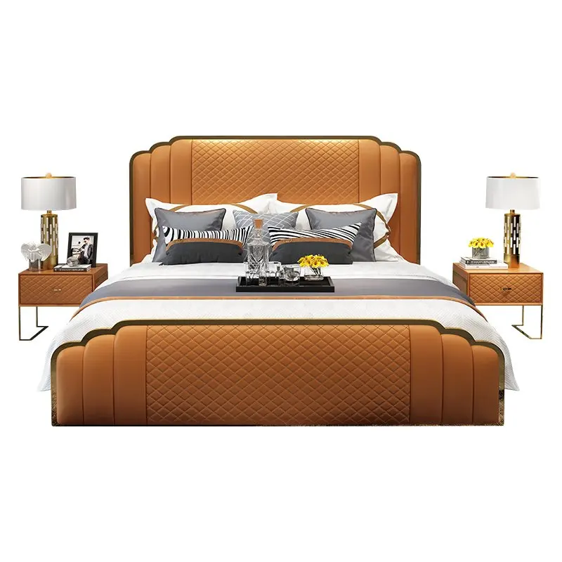 Высококачественная кровать для хранения из массива дерева роскошная кожаная кровать Современная двуспальная Свадебная кровать