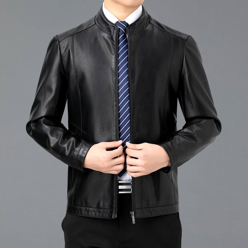 Высококачественная куртка из натуральной кожи на весну и осень, мужская куртка из овчины с воротником-стойкой, короткая облегающая повседневная куртка 195
