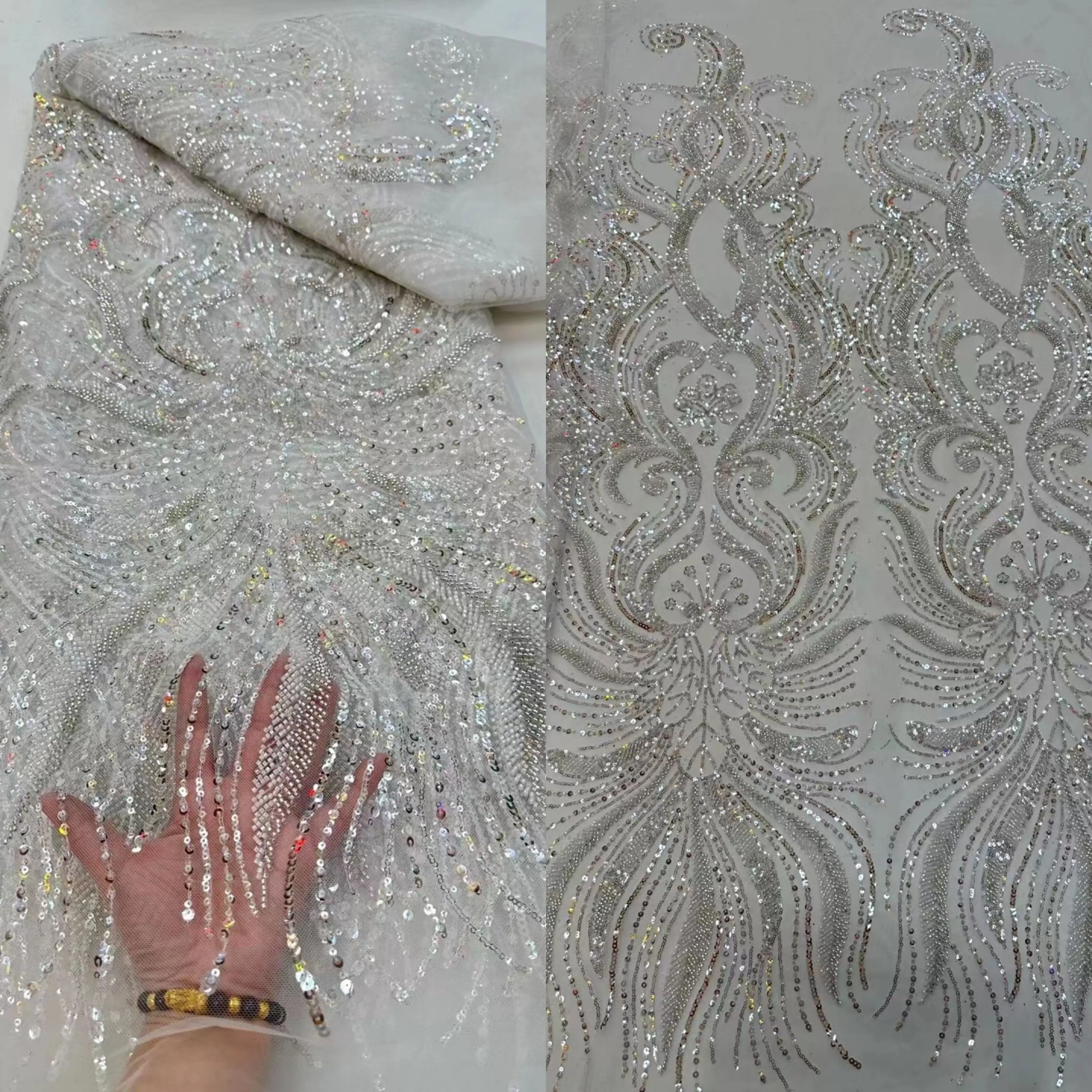 Высококачественная модная искусственная ткань с блестками и бусинами для свадебного платья