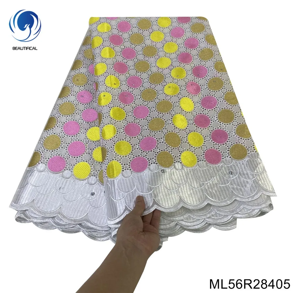 Высококачественная швейцарская вуаль из 100% хлопка трех цветов с кружевной вышивкой, новейшее нигерийское кружево для африканского женского платья ML56R284