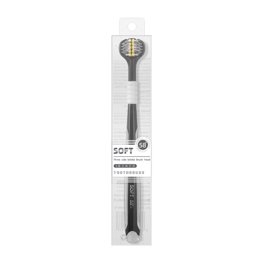 Высококачественная U-образная трехсторонняя спиральная зубная щетка с шелковистой мягкой щетиной, классическая двухцветная - черная и белая чёрный