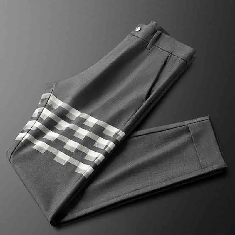 Высококачественные красивые качественные Осенние повседневные брюки мужские маленькие прямые Полосатые мужсветильник кие деловые брюки