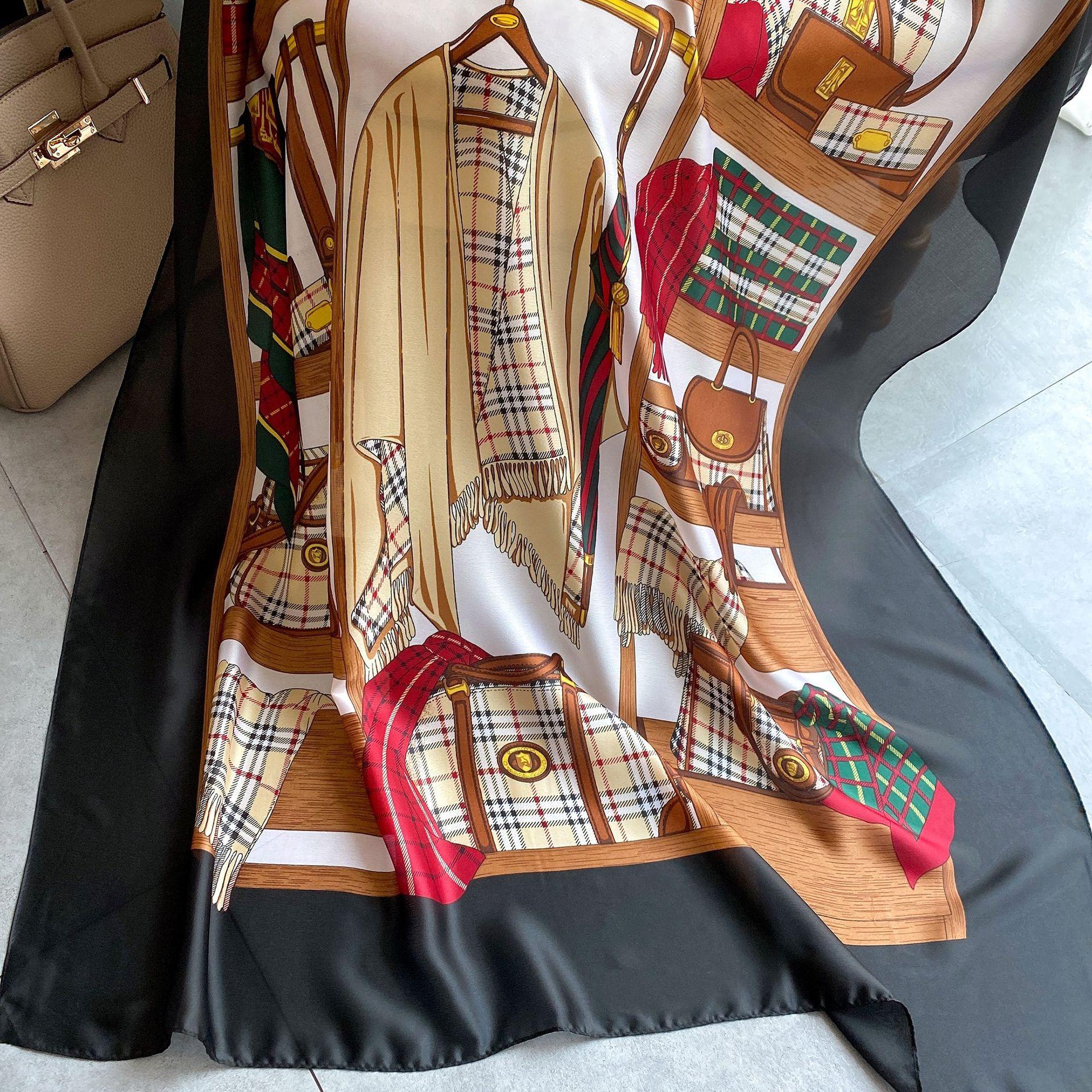 Высококачественные роскошные шелковые шарфы, повязка на голову, шарфы, шейный шарф для женщин, шелковый шарф с цепочкой, женская декоративная шаль 180-90cm