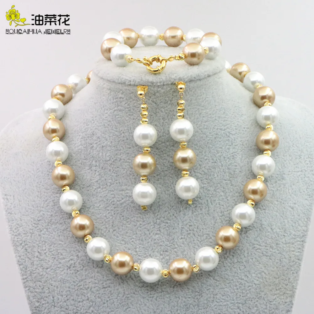 Высококачественный Элегантный комплект из 14 ММ ЮЖНОГО МОРЯ жемчужное ожерелье, браслет, серьги комплект ювелирных изделий золотой аксессу...
