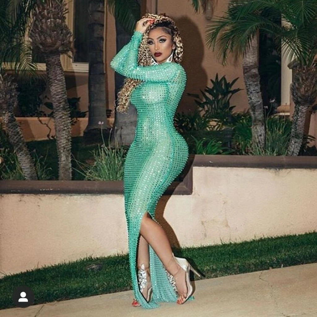 Высококачественный блестящий длинный костюм для ночного клуба, танцовщицы, певицы