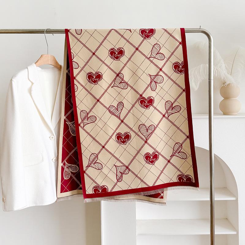Высококачественный женский шарф Temperament, двухсторонняя теплая шаль Love Winter, утолщенный шарф 185cm красный