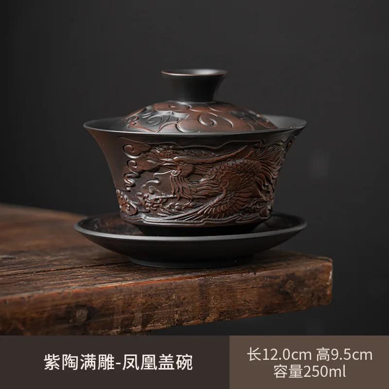 Высококачественный китайский чайный сервиз из фиолетовой керамики, гайвань, чашки с крышкой, миска, традиционная чашка для заваривания чая ручной работы, чайная чаша