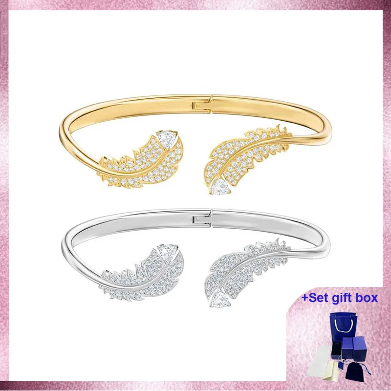 Высококачественный модный Шарм-браслет SWA красивый браслет, перо, белый, позолоченный Изысканный Подарочный ящик Бесплатная доставка