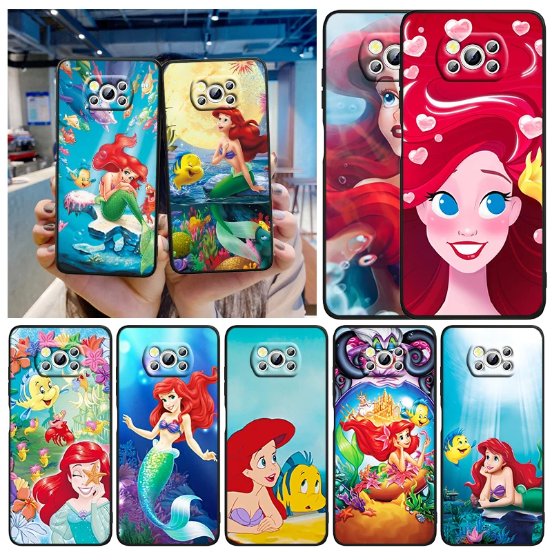Mermaid Disney Princess For Xiaomi Civi Mi Poco X3 NFC F3 GT M4 M3 M2 X2 F2 Pro C3 F1 Silicone Shell Capa Black Phone Case