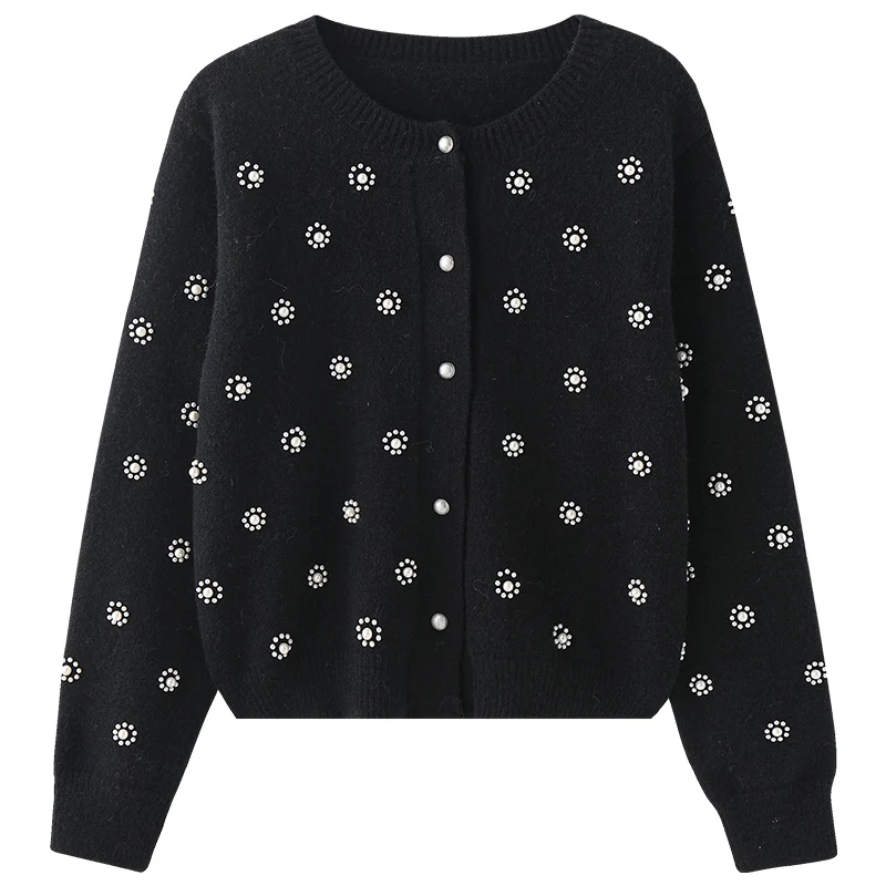 Высококачественный роскошный кардиган с жемчужинами и бусинами, Черный Модный брендовый дизайнерский кардиган, одежда для Рождества