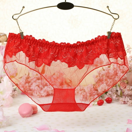 MRULIC intimates for women Women s Lace Panties Seamless Breathable Panty Hollow Briefs Underwear RD Red + One size