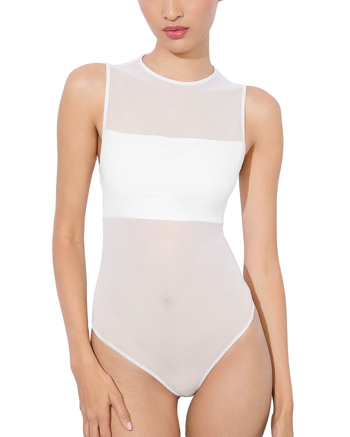 Боди с сетчатыми вставками и бретелькой-бандо Alice and Olivia, слоновая кость/кремовый