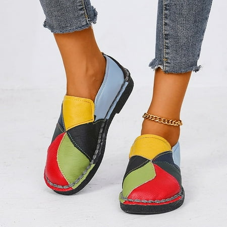 Women Loafers Patches Stitching Flat Shoes Woman Summer Flats Soft Candy Colors Genuine Leather Moccasins Loafers