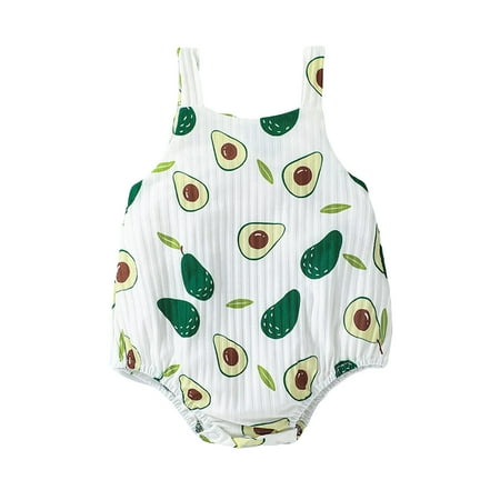 EHTMSAK Newborn Infant Baby Toddler Girl Boy Cotton Sleeveless Fruit Print Bodysuit White 0-18M 6