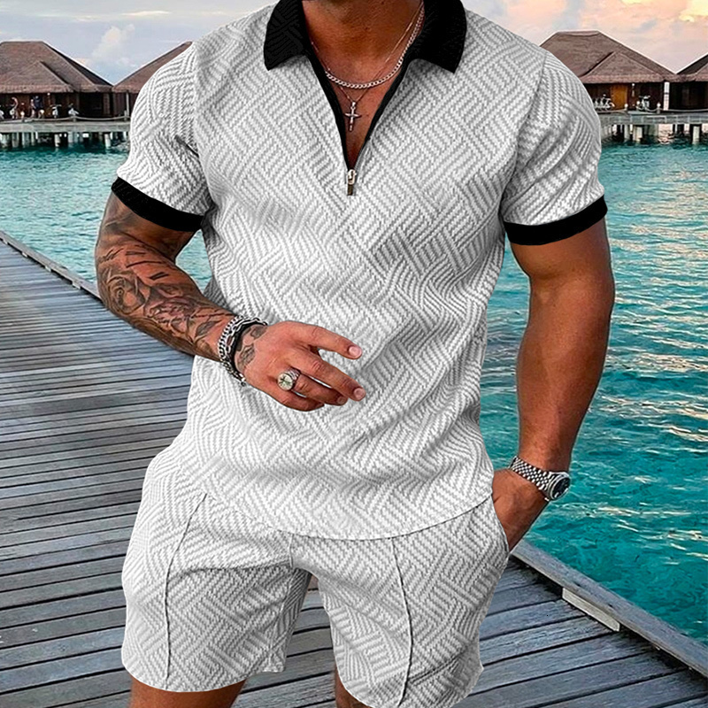 Mens Tracksuits Mens Business Style Polo Shirt Sets Mens Solid Color Vneck Zipper Short Sleeve Polo ShirtShorts Two Pieces Man Vintage Suit 230316, Kz-p3239