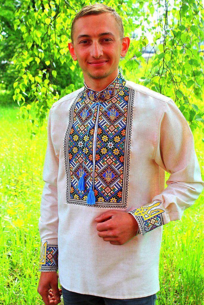 Вышиванка мужская "Тризуб" на домотканом полотне 50