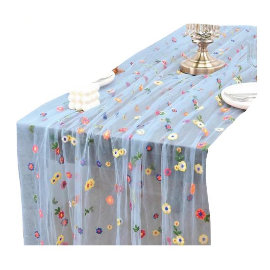 Вышитая Цветочная Скатерть-дорожка Весенняя Летняя Цветочная Скатерть-дорожка 6 футов Тюлевая Скатерть-дорожка для Дома Вечеринки Праздника Свадебного Украшения 30x180cm
