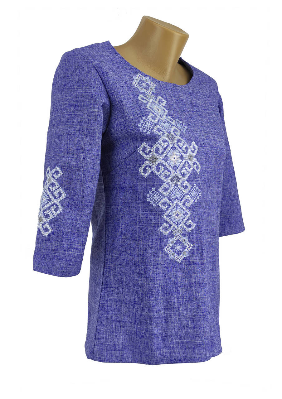 Вышитая женская блуза на 3/4 рукав в цвете джинс «Фламинго»