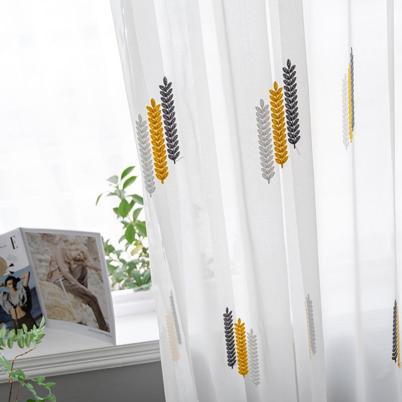 Вышитые прозрачные шторы Современные газовые шторы Желтые Гостиные Синие Спальни Белые нитяные оконные тюлевые шторы W200xH270cm&Pull Pleated Tape