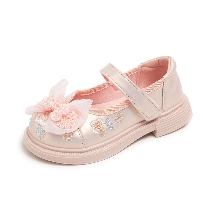 Вышитые туфли для девочек, детские кожаные туфли для вечеринки, свадьбы, мягкая подошва, модные детские туфли принцессы с цветами и бантом 26 розовый