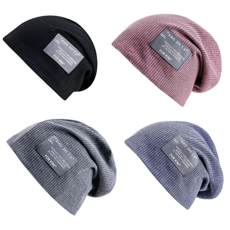 Вязаная Зимняя теплая шапка 634C, вязаная крючком шапка, однотонная шапка, Повседневная мешковатая шапка