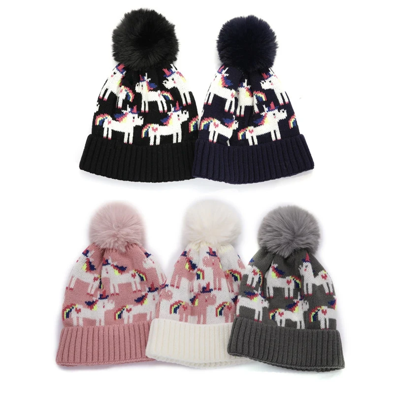Вязаная ОБЖИМНАЯ мультяшная сохраняющая тепло детская шапка с помпоном эластичная осенне-зимняя трикотажная шапка