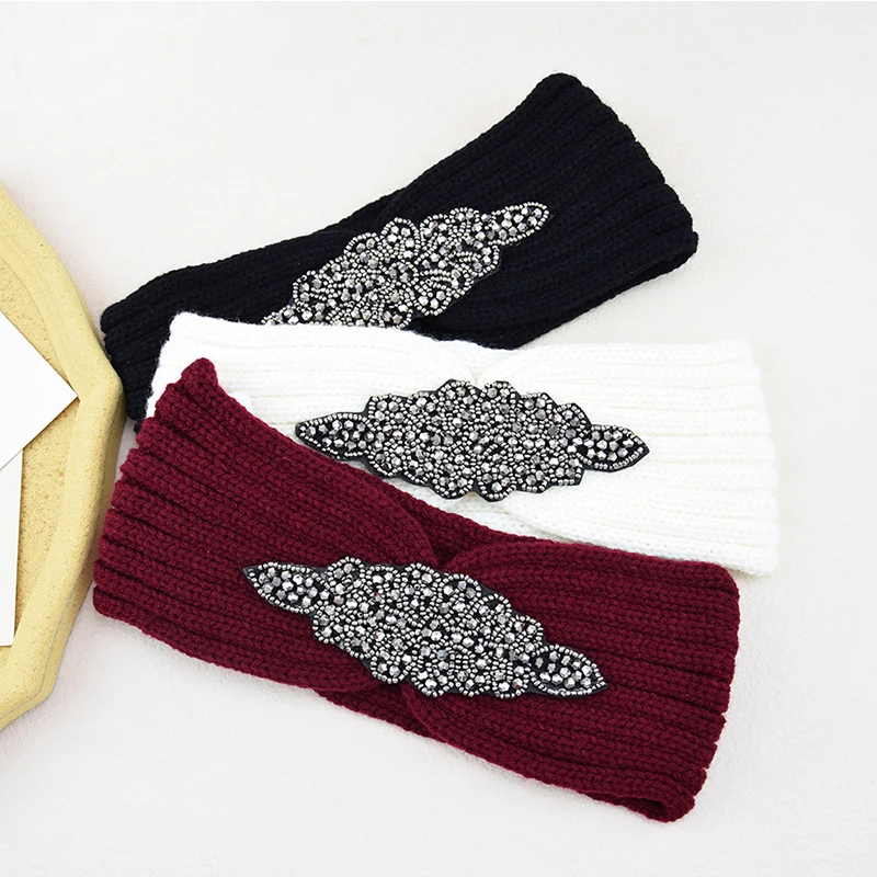 Вязаная повязка на голову с инкрустацией стразами Стразы тюрбан широкая эластичная повязка для волос обогреватель для ушей аксессуары для ...