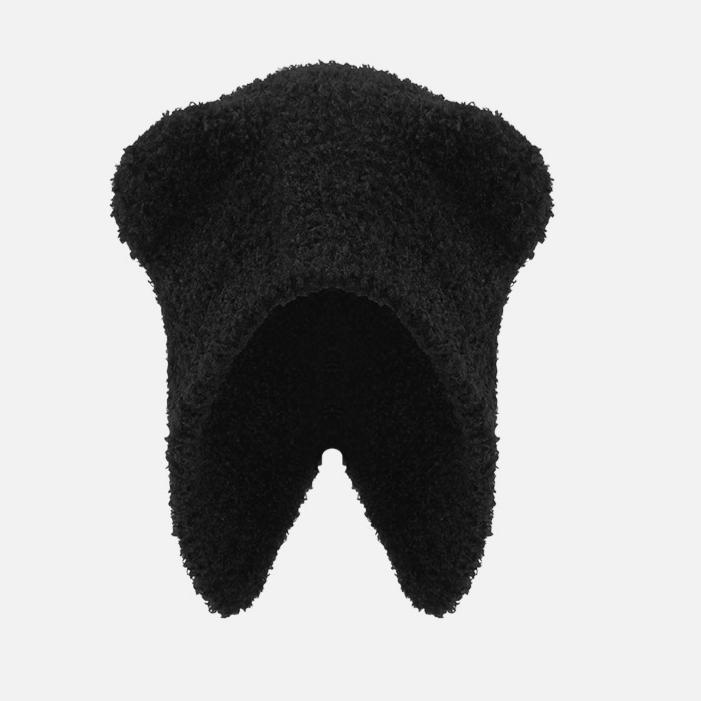 Вязаная теплая шапка в стиле хип-хоп, зимняя, черная, белая, серая, красная, теплые шапки, термошапка с медвежьими ушками, для холодной погоды, мягкая шерстяная, шапки-бини