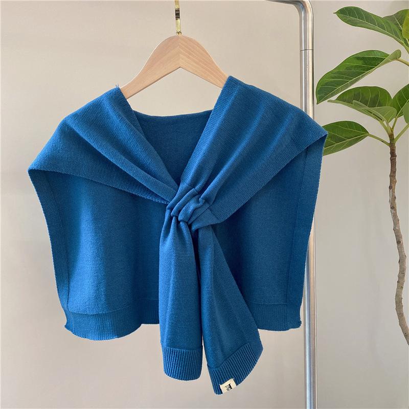 Вязаная шаль женская тонкая внешняя накидка офисная теплая шейный отдел позвоночника накладной воротник перфорированная накидка на плечи бирюзовый синий