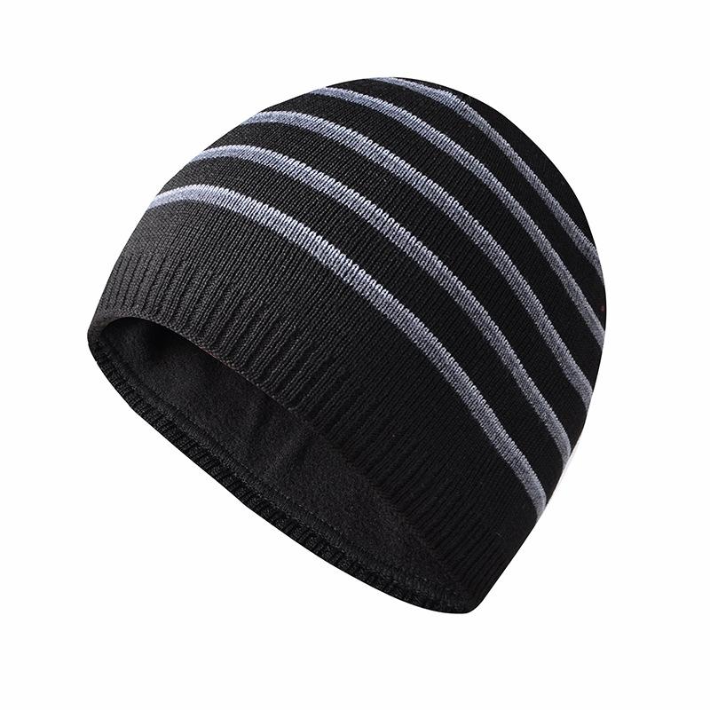 Вязаная шапка Мужская зимняя флисовая черная полосатая шерстяная шапка Женская уличная велосипедная шапка-пуловер 54-58cm