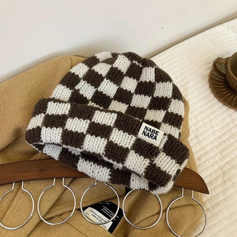Вязаная шапка в клетку для женщин на осень и зиму, новый корейский стиль, нишевая, большой окружности головы, шерстяная шапка, подчеркивающая маленькое лицо, теплая шапка One size