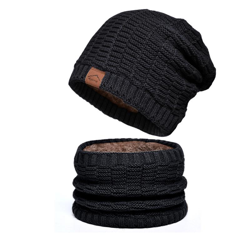 Вязаная шапка из двух частей, мужская, утепленная, шапка, шарф, комплект, ушанка, шерстяная шапка для повязки на голову Average size чёрный