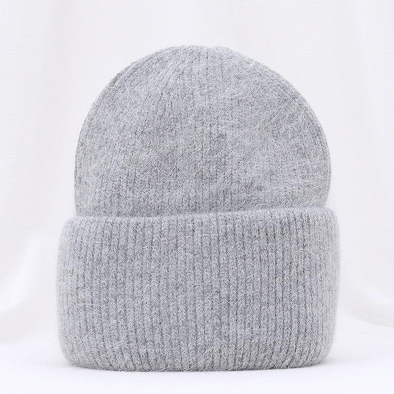 Вязаная шапка из меха ангорского кролика для женщин, теплая, модная, осень-зима, однотонная, шерстяная шапка, пуловер, кепка для мужчин и женщин, стиль для пары M(56-58cm) светло-серый