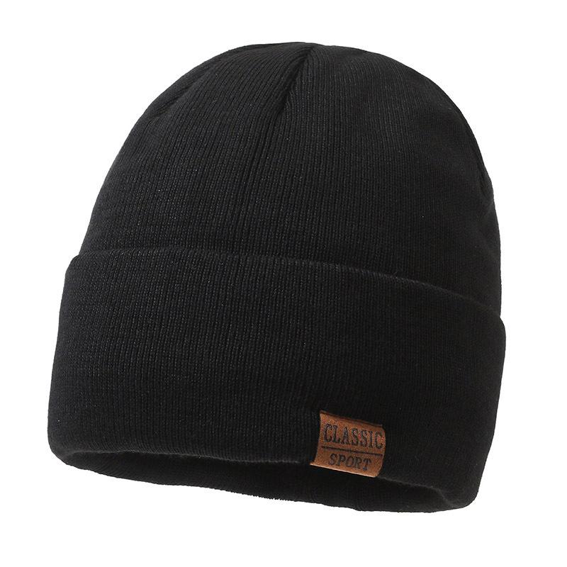 Вязаная шапка, мужская осенне-зимняя теплая пуловерная кепка, уличная шерстяная шапка с рукавами, шапочки с черепами, лыжная кепка с напуском чёрный