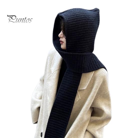Вязаная шапка со встроенным шарфом, ветрозащитная, плотная, головной убор, обёрнутая, защитная шапка для ушей, шляпа для фотографов, двусторонний шарф, кепка для отдыха на природе чёрный