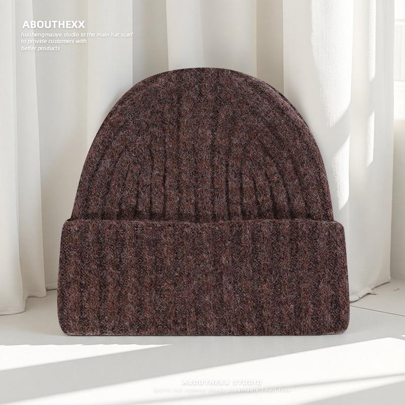 Вязаная шерстяная шапка для женщин на осень и зиму, утолщенная теплая шапка-пуловер, уличная ветрозащитная однотонная простая холодная шапка для мужчин M(56-60cm)