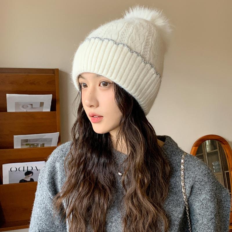 Вязаная шерстяная шапка женская осенне-зимняя повседневная шапка-пуловер для улицы, ветрозащитная теплая шапка One size белый