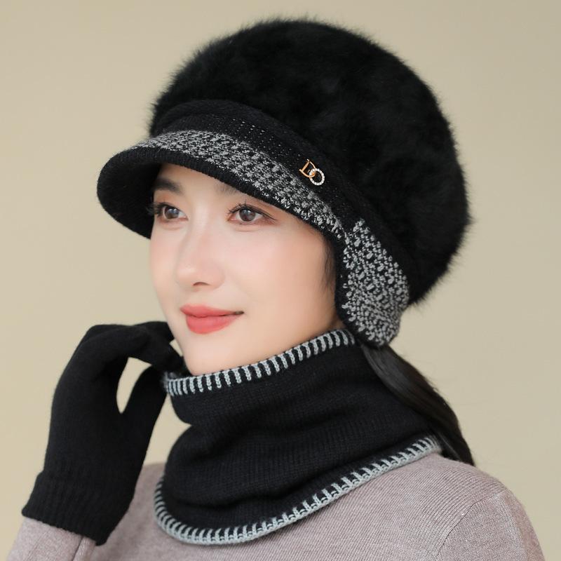 Вязаная шерстяная шапка из кроличьего меха для женщин на осень и зиму. Универсальная зимняя теплая шапка для мам. Шапки для защиты ушей для женщин среднего и пожилого возраста. one size