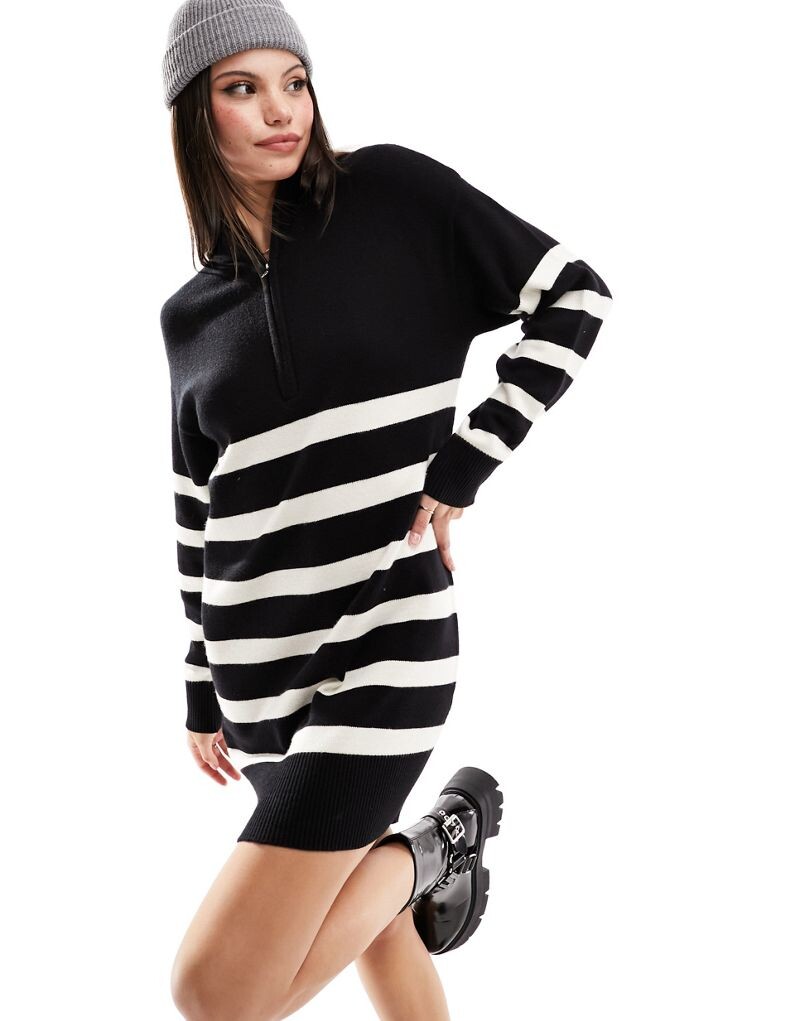 Вязаное платье на молнии спереди Stradivarius в черную полоску